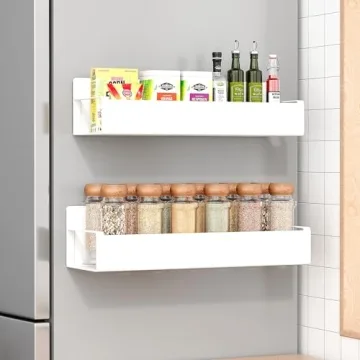 Show moreIntroducing the Vetacsion 2 Pack Moveable Fridge Magnetic Spice Racks, an innovative solution to all your kitchen storage dilemmas! Say goodbye to clutter and hello to organization with these stylish, no-drill, no-assembly spice shelves. With a super-strong magnet embedded in the back, these shelves firmly attach to any metal surface—transforming your kitchen, enhancing accessibility, and keeping your spices readily available. Each package brings you a duo of magnetic shelves (one large and one medium), allowing for efficient organization of up to 12 spice jars while holding up to an impressive 11 lbs per shelf!