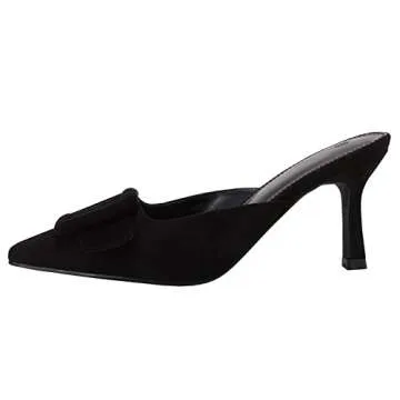 VETASTE Women's Heeled Mules Pointed Toe Suede Buckle Slip On Sandals Kitten Heels Party Wedding Shoes