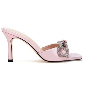 VETASTE Women's Heeled Sandals Square Open Toe Double Bow Satin Mules Heels Wedding Party Slip on Stilettos