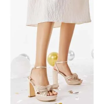 Show moreIntroducing the VETASTE Women's Pleated Bow Knot Platform Heeled Sandals—the perfect fusion of elegance and comfort for any modern woman. Designed with a chic pleated bow knot detail, these open toe chunky block heel sandals are not only fashionable but also functional. With a heel height of approximately 4.13 inches (105mm) and a supportive platform of about 0.98 inches (25mm), they provide a flattering lift while ensuring stability for all-day wear. The adjustable ankle buckle strap allows for a customizable fit, making them versatile enough for any occasion.