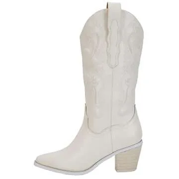 Introducing the VETASTE Women's Western Cowboy Boots, a striking combination of style and comfort tailored for the modern woman. Crafted with meticulous attention to detail, these mid-calf boots feature a trendy pointed toe design that exudes sophistication, while the intricate embroidery adds a touch of traditional western charm. The white-washed chunky heel not only elevates your look but also provides a perfect balance of height and stability for all-day wear. Whether you're stepping out...