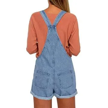 Vetinee Women's Light Blue Classic Adjustable Straps Cuffed Hem Denim Bib Overall Shorts Medium