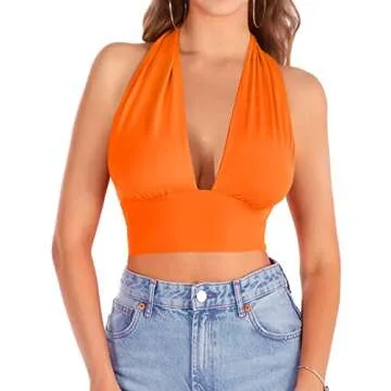 VETIOR Orange Crop Top Womens Halter Tops Sexy Tops Criss Cross Party Cute Summer Tops(Orange,Small)