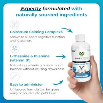 Why You Will Love This Product: Your pet deserves to navigate the world with confidence and peace of mind. The VetriScience Composure Max Liquid Formula not only provides practical relief from anxiety but also helps maintain their natural disposition. With its easy-to-use liquid formulation, you can rest assured knowing you are providing your beloved animal a safe, effective way to manage their stress, enhancing their quality of life and strengthening your bond.