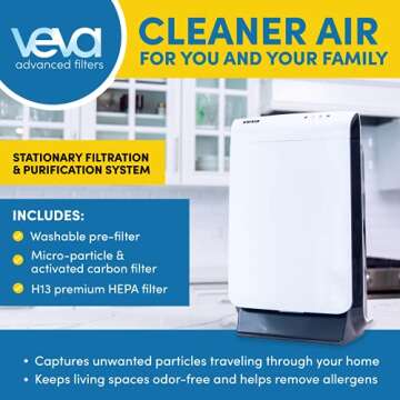 VEVA Air Purifier Large Room - ProHEPA 9000 Premium Air Purifiers for Allergies, Smoke, Dust, Pet Dander & Odor with H13 Washable Filters - White