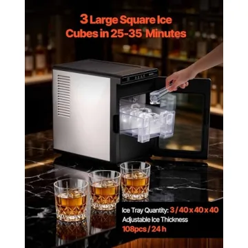 VEVOR Countertop Ice Maker, 22 lbs per Day, Self-Cleaning Portable Machine with Tong, Drawer-Style Ice Access, Ice-Making Machine with Large Square Cubes, for Home, Kitchen, Office, Bar & Party