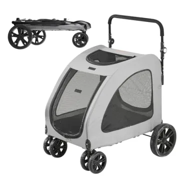 Show more Introducing the ultimate VEVOR Extra Large Dog Stroller, designed to elevate your pet's outdoor experience while ensuring their comfort and safety. Crafted from a robust alloy frame with a rust-resistant powder coating, this stroller supports up to 160 lbs, making it perfect for even your larger furry friends. Whether you're strolling around the park or embarking on a long journey, this pet stroller ensures a smooth ride for your companions while keeping mobility issues at bay.