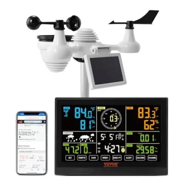 Show moreIntroducing the VEVOR YT60234 WiFi Weather Station 7-in-1, your ultimate solution for keeping track of the weather right from the comfort of your home or backyard. This impressive device is engineered to offer precise monitoring of a full spectrum of weather conditions including wind speed, wind direction, temperature, humidity, rainfall, and UV light. With its smart functionality, you can easily view wind chill, dew point, barometric pressure, calendar, and moon phase to ensure you’re always prepared for any changes in the weather. The IPX6 waterproof rating guarantees that the device will continue to deliver accurate data even during heavy rainfall, making it truly reliable for outdoor use.