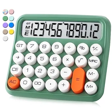 Show more Introducing the VEWINGL Mechanical Switch Calculator, a captivating fusion of retro aesthetics and contemporary functionality that transforms the mundane task of calculating into an enjoyable experience. This desktop calculator stands out with its unique mechanical switch design, providing tactile feedback reminiscent of classic typewriter keyboards. With a large, easy-to-read 12-digit LCD display angled at 15° for optimal visibility, it ensures you can handle calculations with both comfort and accuracy. Measuring at 5.7 x 5 inches, it fits perfectly on any desk, making it an ideal companion whether you're at the office, home, or school.