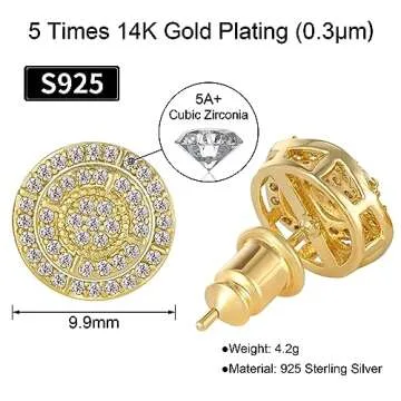 VEXXS Diamond Stud Earrings for Men, 14K Gold Plated Iced Out Earrings 5A CZ Stones Hypoallergenic Earrings