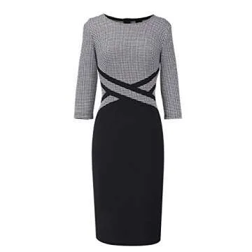 VFSHOW Womens Black and White Houndstooth Elegant Colorblock Work Business Office Church Sheath Dress 2132 HTH S
