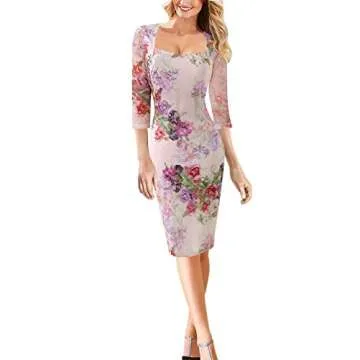 VFSHOW Womens Work Business Square Neck Bodycon Dress Office Retro Elegant Slim Fitted Pencil Sheath Dress