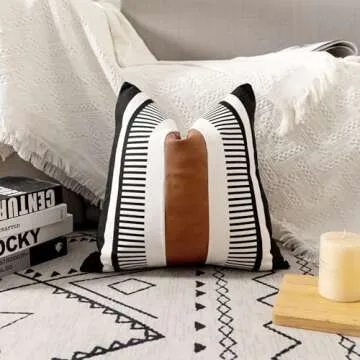 Show more Introducing the Vfuty Farmhouse Decorative Throw Pillow Cover, a stunning accent piece that transforms your home décor into a chic, modern oasis. Measuring 18 x 18 inches, this pillow cover is designed for versatility, effortlessly enhancing any space—from your living room sofa to your restful reading nook. Crafted from high-quality cotton with elegant faux leather accents, it offers a rich texture that feels luxurious and cozy. What’s more, the double-sided design ensures exquisite workmanship, allowing you to showcase a chic tribal stripe pattern that captivates and adds character to your interior design.