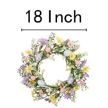 VGIA 18 inch Easter Wreath with Pastel Eggs and Wild Flowers for Home