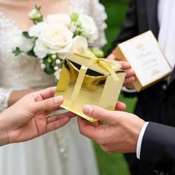Show more Introducing the VGOODALL 50PCS Party Favor Boxes, a stunning solution for all your gift-giving needs! Crafted from premium kraft paper, these small gift boxes bring a touch of elegance and charm to any occasion. Each box measures 3" x 3" x 3", making them perfect for small to medium-sized treats such as candies, chocolates, cookies, and even tiny wine bottles. Each purchase includes 50 beautifully crafted gold gift boxes along with 50 matching gold ribbons, allowing you to create a cohesive and luxurious look for your celebrations. Experience how these boxes can elevate your gifts into memorable treasures that your guests will appreciate!