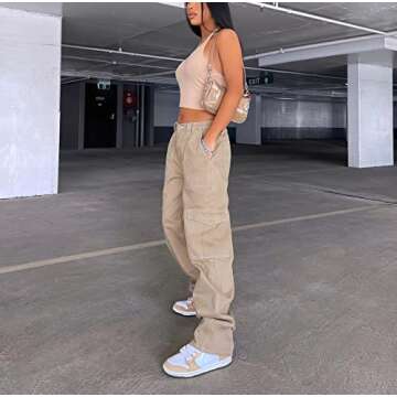 Viatabuna Women's High Waist Straight Leg Y2K Streetwear Cargo Pants Baggy Boyfriend Jeans with Pocket Khaki