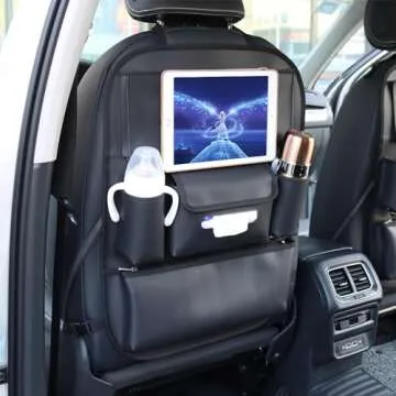 Viaviat Car Seat Organizers Waterproof Backseat Protector with Storage Pocket Large Leather Kick Mats for Kids Pets Automobile SUV Truck (Black, Large Pocket)
