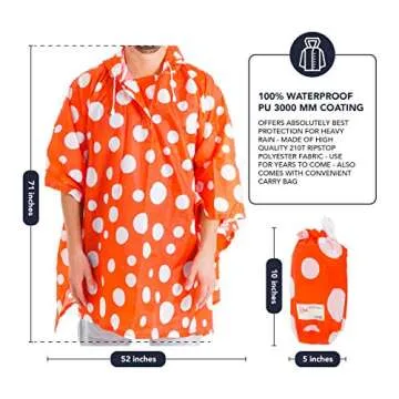 Vibe Reusable Rain Poncho Adult Men Women Many Prints, Hooded Unisex Raincoat