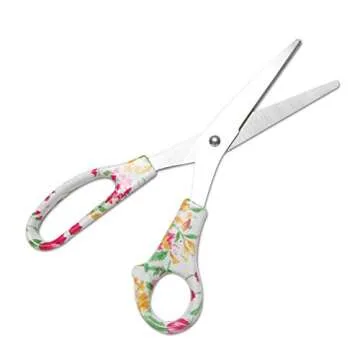 The scissors boast an eye-catching floral design that adds a vibrant touch, seamlessly blending functionality with fun. Constructed with heavy-duty materials, they are built to last and handle a variety of cutting tasks with ease. Whether you are wrapping gifts, crafting at home, or completing projects at work, these scissors will not let you down. Pair them with the matching tape dispenser and stapler to create a cohesive look that is both stylish and practical.