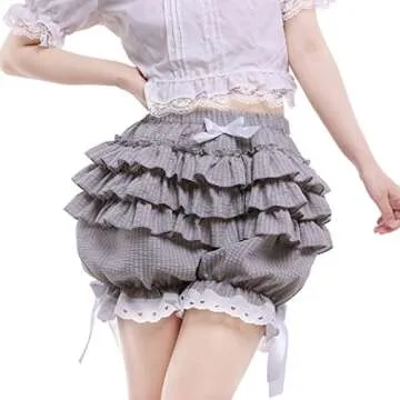 Vibsion Womens Lolita Bloomers Maid Ruffles Pumpkin Pants Bottom Shorts Cute Security Short Pants for Girl Gray S