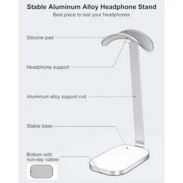 Show more This remarkable headphone stand is designed to elevate your listening experience to new heights. Crafted with a sturdy aluminum alloy support rod, it provides not only a sleek aesthetic but also unparalleled durability. The base, made of a combination of aluminum and ABS with a non-slip silicone bottom, ensures that your headphones are always securely positioned, preventing accidental drops and damage.