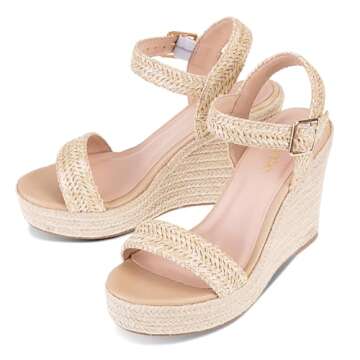 Show moreIntroducing the VICKI·VICKI Women's Platform Sandals, the perfect fusion of elegance and comfort designed for every fashion-forward woman. With a heel height of approximately 4.3 inches and a platform height of about 1.5 inches, these sandals elevate your style while providing the utmost support. Their unique braided jute platform not only adds textured sophistication but also ensures a stable base to enjoy heightened elegance without sacrificing comfort. Featuring an adjustable ankle strap, they are designed to hug your feet securely, adapting to various foot shapes for an exceptional fit.