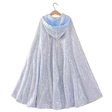 Vickorpen Princess Hooded Cape Cloaks for Little Girls Christmas Halloween Custome Cosplay Party Accessories(Silver,M(110-130cm Height))