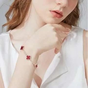 VICTFAFA 4 Leaf Clover bracelets for Women, Dainty Lucky Charm bracelet, Simple Clover bracelet Jewelry for Women(Red)