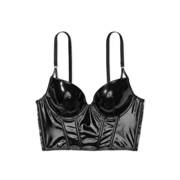 Show moreStep into the spotlight with the Victoria's Secret Faux Patent Leather Push Up Corset Top, a stunning piece that combines vintage 1980s glamour with modern sophistication. This exquisite bustier features a bold black faux leather front contrasted with delicate rose lace at the back, offering a perfect blend of edgy and feminine. Designed for the confident woman, this corset top not only enhances your silhouette with its padded push-up design and boning for structure but also ensures comfort and support throughout the day or night. The back hook and eye closure provides a secure fit, while the sheer rose lace adds a touch of allure. Whether you're dressing up for a special occasion or adding a statement piece to your lingerie collection, this corset top is a must-have.
