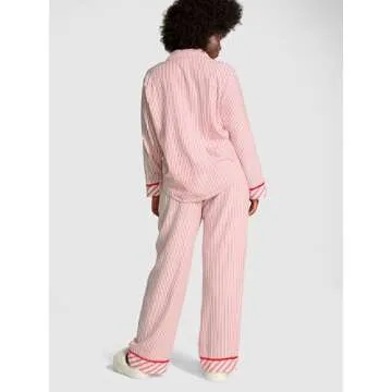 Show moreIndulge in the ultimate comfort with the Victoria's Secret PINK Flannel Pajama Set in stunning Bright Vermillion Stripes. Ideal for cozy nights or leisurely weekends, this two-piece sleepwear set effortlessly blends style and functionality, making it a must-have addition to your loungewear collection. Made from ultra-soft flannel fabric, it provides a snug, yet breathable fit that ensures warmth during chilly nights. The long sleeve button-down shirt features a classic design with a chic finish, while the pants are tailored with an elastic waistband to guarantee maximum comfort and flexibility.