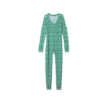 Show moreExperience unparalleled comfort with the Victoria's Secret PINK Thermal Onesie, a must-have addition to your sleepwear collection. Tailored from high-quality thermal material, this long sleeve onesie is designed to provide you with warmth and coziness for all-day lounging, making it the perfect companion during chilly winter nights. Its elegant V-neck design, coupled with a button-up front, not only adds a stylish twist but also makes it incredibly easy to put on and take off. Available in a vibrant green hue, this two-piece PJ set embodies both functionality and fashion.
