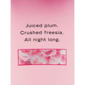 The lotion features a fruity fragrance, combining juicy plum and crushed freesia for a sweet and captivating aroma.