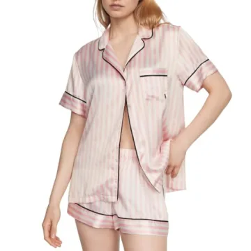 Designed for the modern woman who appreciates sophistication without sacrificing comfort, this pajama set highlights both quality and style. The breathable fabric not only guarantees a restful night’s sleep but also allows for comfortable daytime lounging. Wrapped in a delightful pink iconic stripe pattern, this set effortlessly adds a hint of glamour to your wardrobe while maintaining a fun and playful vibe. With its luxurious feel and chic design, the Victoria's Secret Satin Pajama Set is bound to be a staple in your collection.