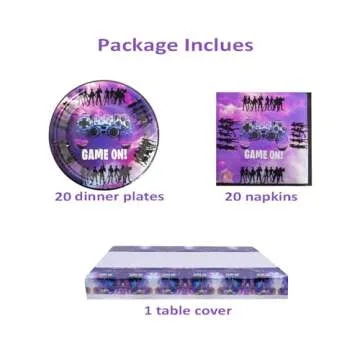 Show moreTransform your child’s birthday bash into an unforgettable adventure with our Video Game Party Supplies Set. Expertly designed for the ultimate gaming experience, this disposable tableware set features a captivating video game aesthetic sure to amaze kiddos and parents alike. Crafted from premium quality materials, our set stands strong against spills and messes, allowing both kids and their friends to enjoy their favorite snacks without a worry. The collection includes 20 large plates, 20 napkins, and a 70-inch x 42-inch table cover, making it perfectly tailored to serve up to 20 enthusiastic gamers. Ideal for celebrating birthdays or any gaming-themed event, each item is meticulously designed for vibrant visuals that resonate with the gaming culture, ensuring your party is the talk of the playground!