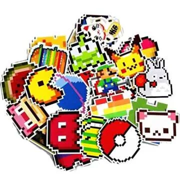 Video Game Themed Retro Pixel 25 Piece Sticker Decal Set for Kids Adults - Laptop Motorcycle Skateboard Decals