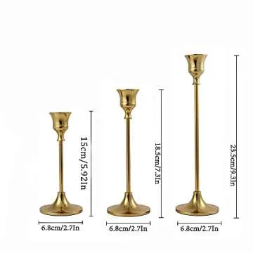 Vidisan Gold Candlestick Holders Taper Centerpiece, Set of 3 Gold Taper Candle Holders Set, for Vintage Modern Decorative Centerpiece for Table Mantel Wedding Housewarming Gift