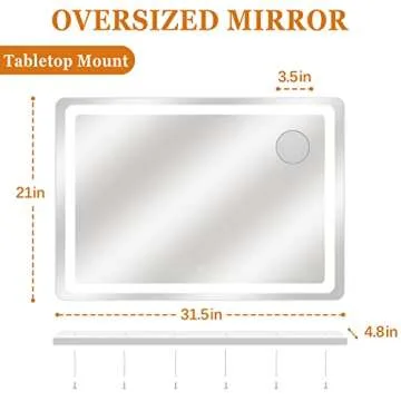 Show more Transform your makeup routine with the Vierose Large Vanity Mirror with Lights. Designed for beauty aficionados, this mirror not only enhances your reflection but also elevates your entire vanity experience. Measuring a generous 31"L x 21"H x 5"W, it's the perfect companion for your medium to large dressing table, ensuring you have a complete and unobstructed view of your upper body. Crafted with high-quality copper-free silver, the mirror provides reflection clarity and durability, making it a practical choice for everyday use.