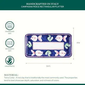 Vietri Campagna Pesce Rectangular Platter, Earthenware Steak Salad Dessert & Snack Serving Plate