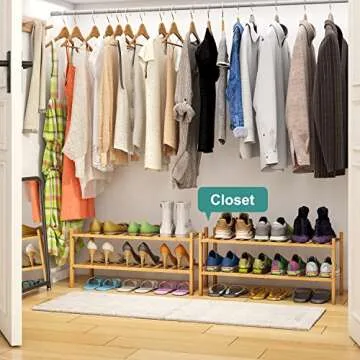 viewcare 2-Tier Bamboo Shoe Rack for Entryway, Bamboo Wood Shoe Organizer for Hallway Closet, Free Standing Shoe Racks for Indoor Outdoor
