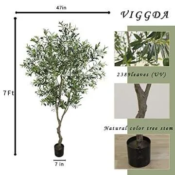 VIGGDA Artificial Tree Faux Olive Tree 7ft - Stunning Faux Plant in Pot