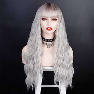 Vigorous Ombre Silver Wigs with Bangs - Perfect for Parties and Cosplay!