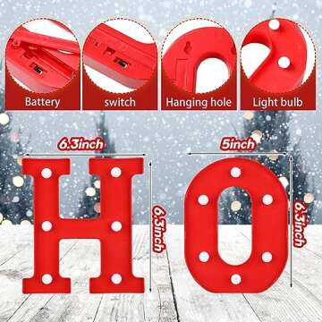 Step into the festive season with the delightful VIHOSE Christmas LED Letter Lights, designed to infuse your home with holiday cheer. Each set comes with six charming lighted letters, featuring three H's and three O's, capturing the essence of merriment in the beloved phrase "Ho Ho Ho". Crafted in vibrant shades of red, these letters are not just decoration but a celebration of joy that fits perfectly in any festive setting. Whether used as a centerpiece on a table, a lovely adornment for...