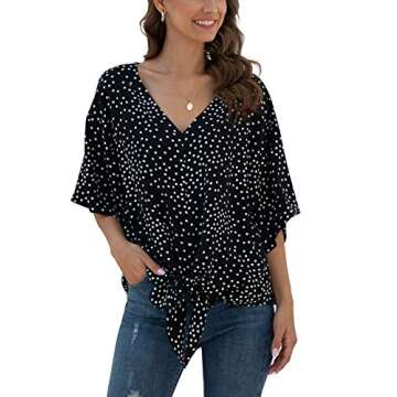 VIISHOW Women Bell Sleeve Shirt Tie Knot Casual Chiffon Blouses Tops(Black Dot,Medium)