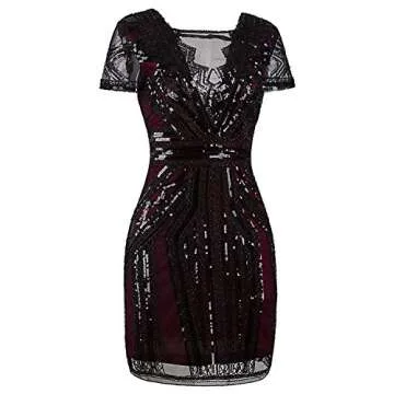 Show moreStep back in time with the stunning Vijiv 1920s Short Prom Dress, a chic blend of vintage charm and modern elegance. This V-neck inspired cocktail dress features exquisite sequins and beaded embellishments that evoke the glitz and glamour of the Roaring Twenties. Crafted with meticulous attention to detail, the rich wine red fabric drapes beautifully, making it perfect for special occasions such as proms, weddings, or themed parties. The short length adds a playful touch while offering comfort and style, ensuring you make a memorable entrance at any gathering.