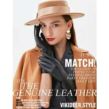 Show more Introducing the exquisite Vikideer Genuine Lambskin Leather Gloves, a perfect blend of style and functionality. Crafted from super-soft genuine lambskin leather, these gloves offer not only elegance but also warmth, thanks to their plush polyester lining. Designed for both everyday use and special occasions, these gloves complement any evening or party dress, making them a versatile addition to your wardrobe.