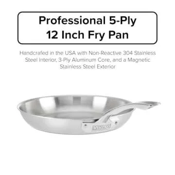 Viking 5-Ply Non Stick Frying Pan, 12 Inch Stainless Steel Kitchen Cookware, Silver