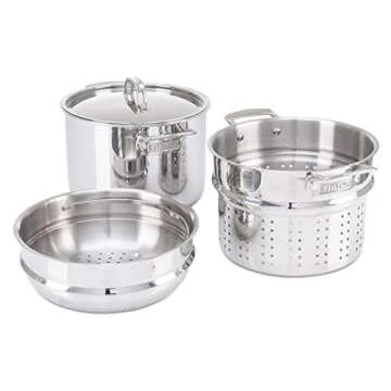 Viking Culinary 3-Ply Stainless Steel Pasta Pot, 8 Quart, Includes Pasta and Steamer Insert, Dishwasher, Oven Safe, Works on All Cooktops including Induction