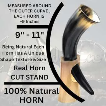 Viking Drinking Horn Mugs 10oz | Handmade Real Horn 9"-12" Cups for Ale Wine Beer Chalice Norse Tankard THOR LOTR Vikings Style Gift for Men - Birthday Christmas Anniversary (Drinking Horn)