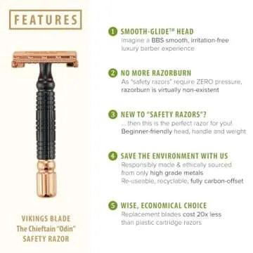 VIKINGS BLADE Double Edge Safety Razor for Men + 5 Swedish Steel Blades + Luxury Case. Smooth, Reusable, Eco-Friendly (Chieftain “Odin”)