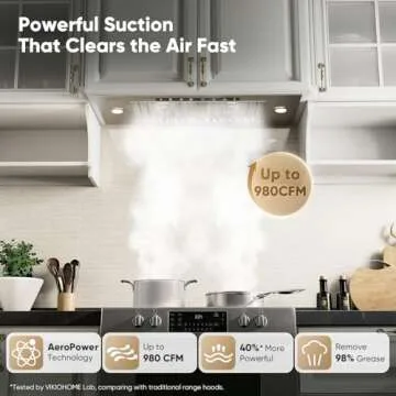 VIKIO HOME Range Hood Insert 30 Inch, 980 CFM Built-in Kitchen Vent Hood, Ducted/Ductless Convertible, Stainless Steel Range Hood with Gesture & Touch Control, Kitchen Hoods for Over Kitchen Stove